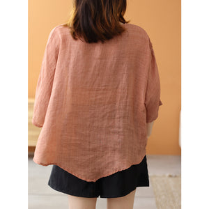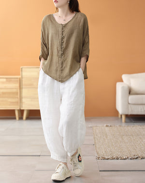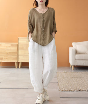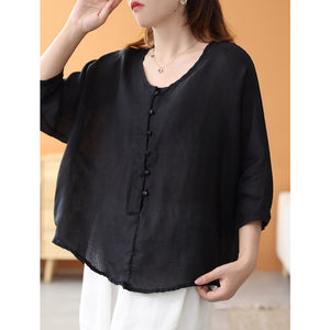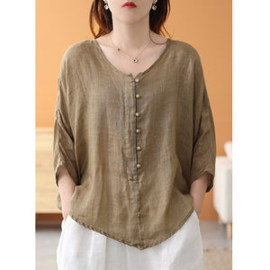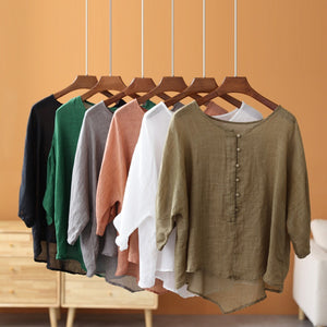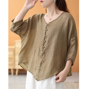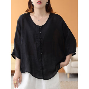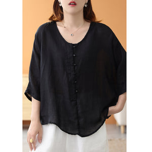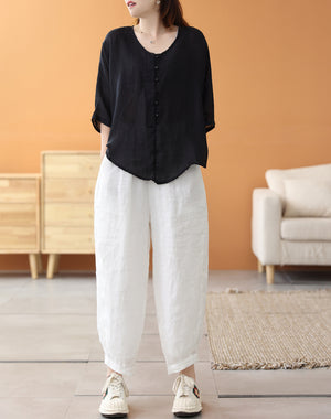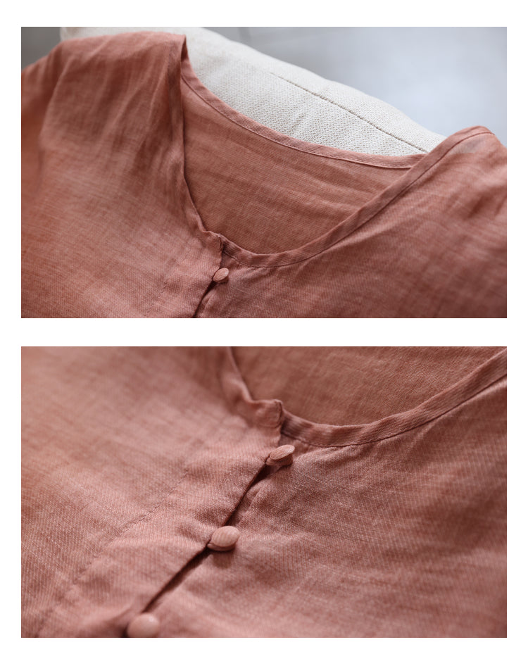 Áo sơ mi linen ngắn tay khuy tròn kiểu đuôi tôm - NU7459