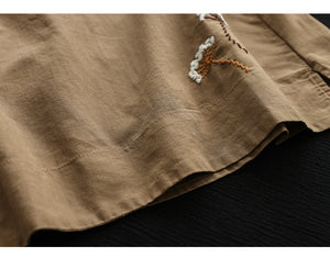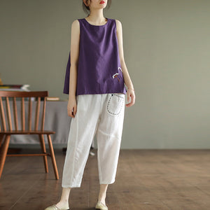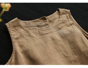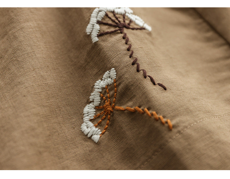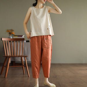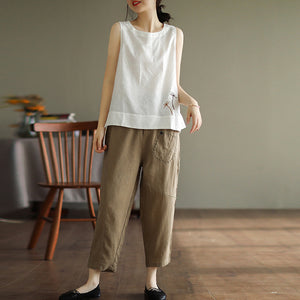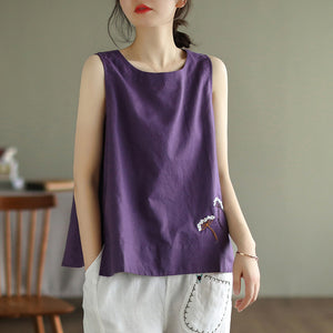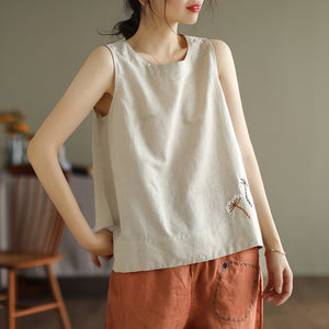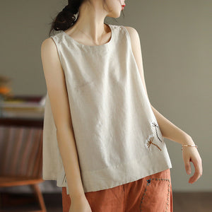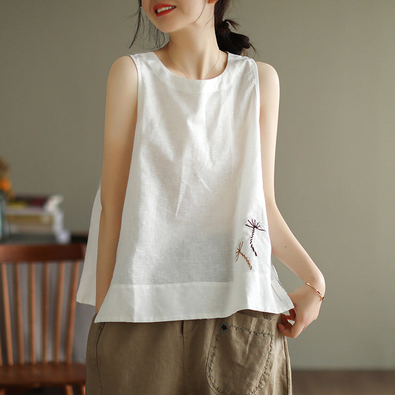 Áo T-shirt linen sát nách cổ tròn thêu hoa bồ công anh - NU6987