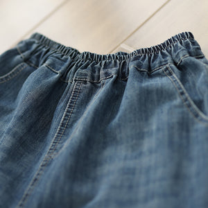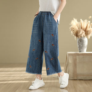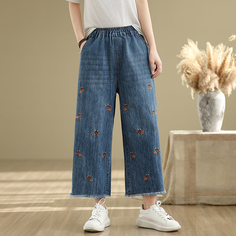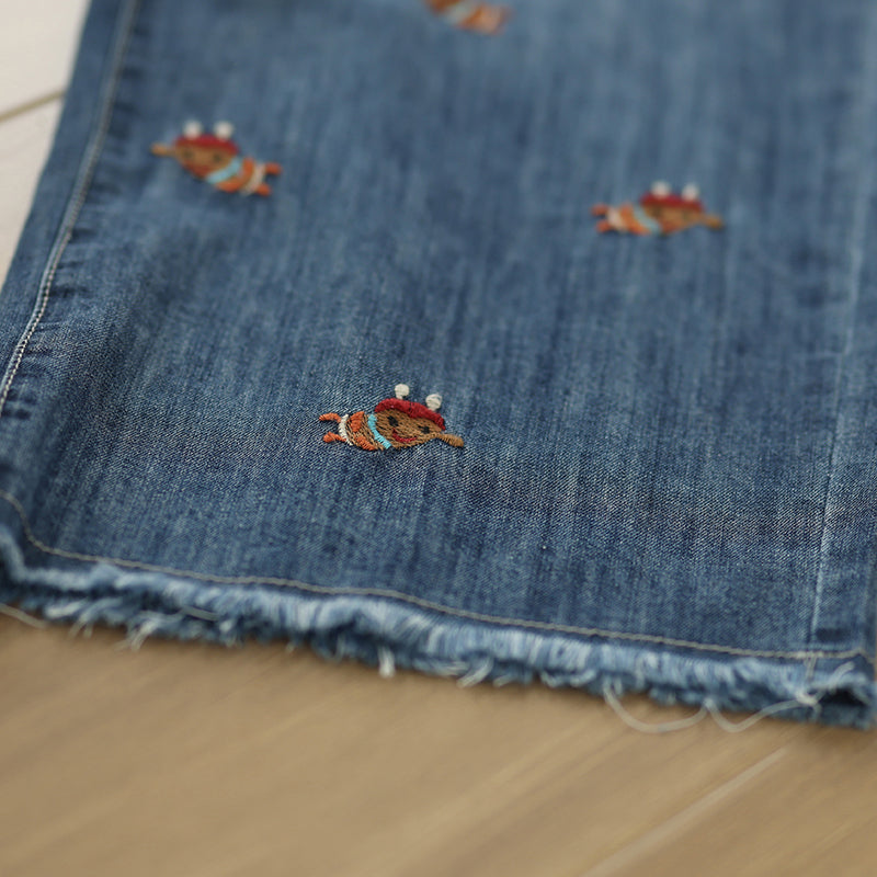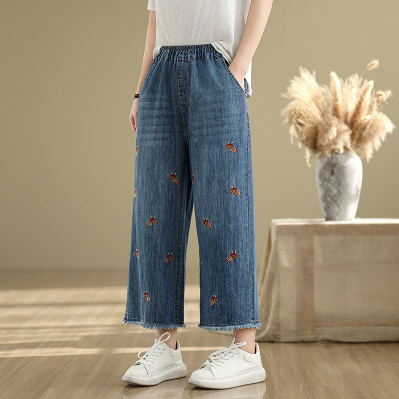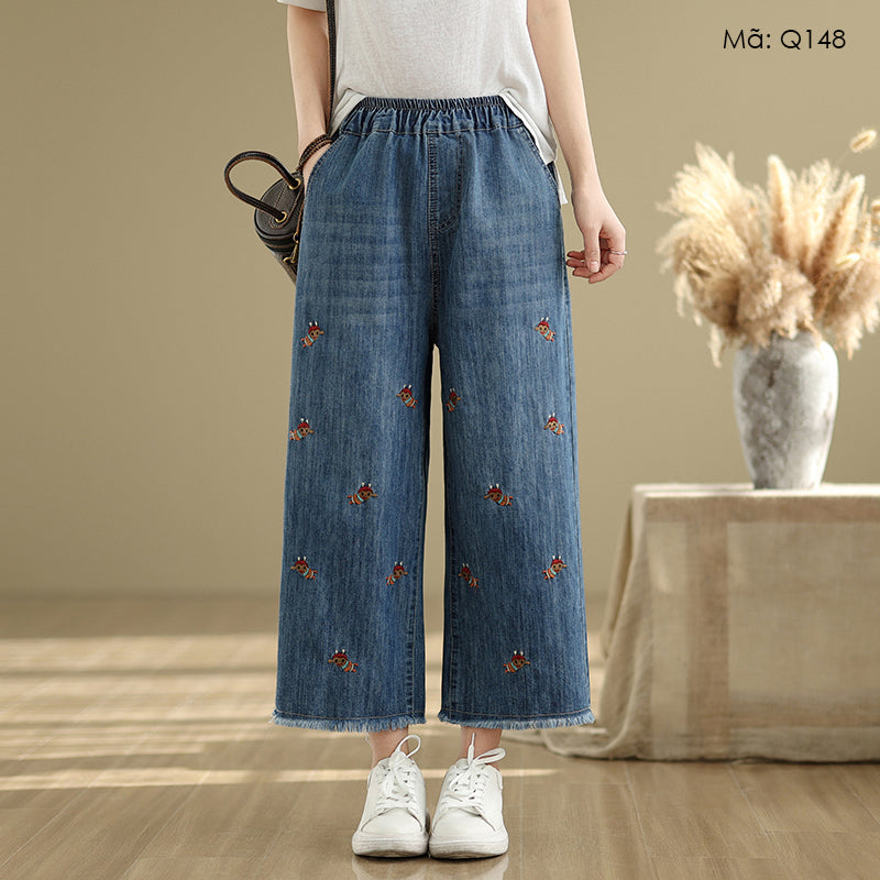 Quần baggy denim lửng lưng thun thêu những chú ong - Q148
