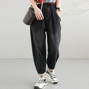 Quần baggy denim lưng thun kiểu bạc gối - NU8057