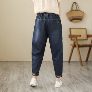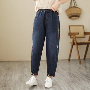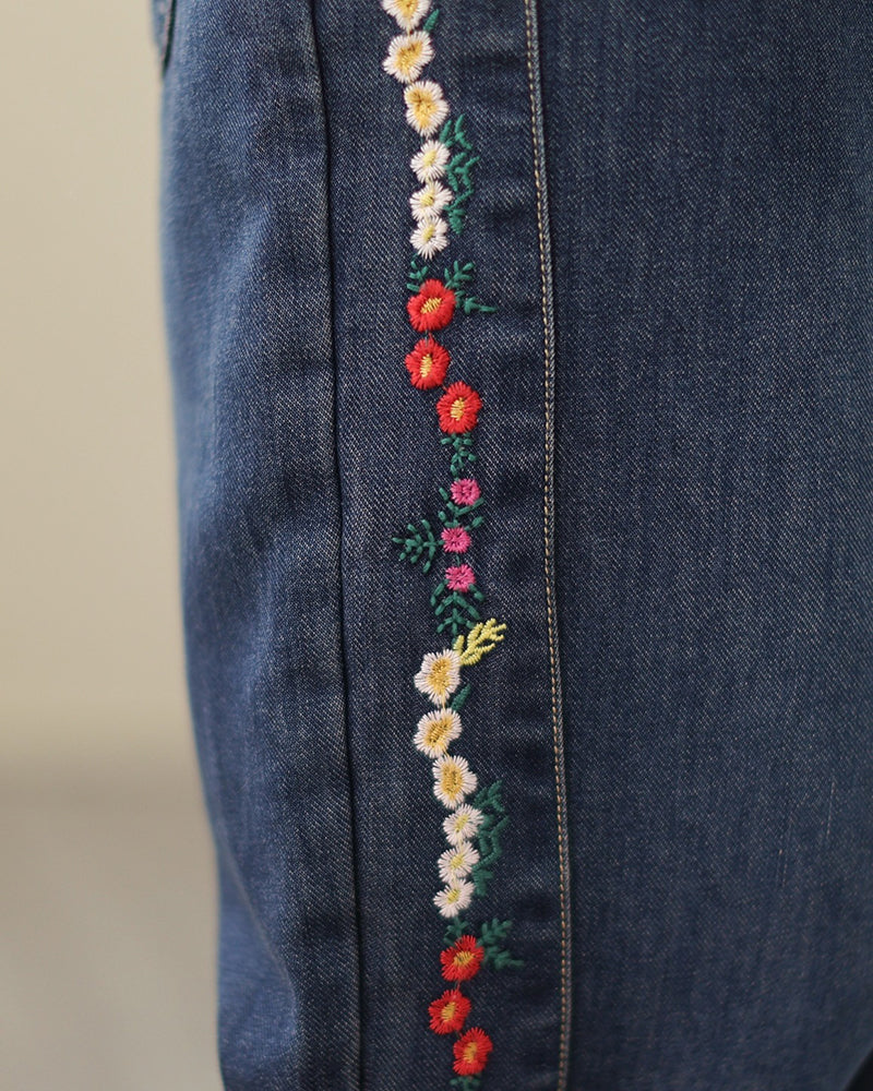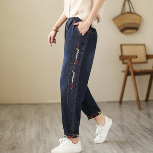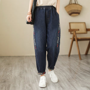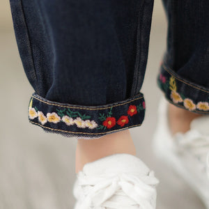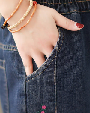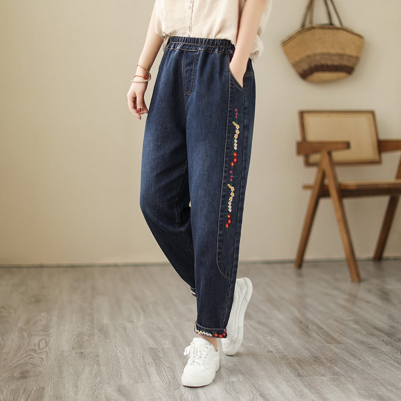 Quần baggy denim lưng thun ống côn thêu những dây hoa - NU10350