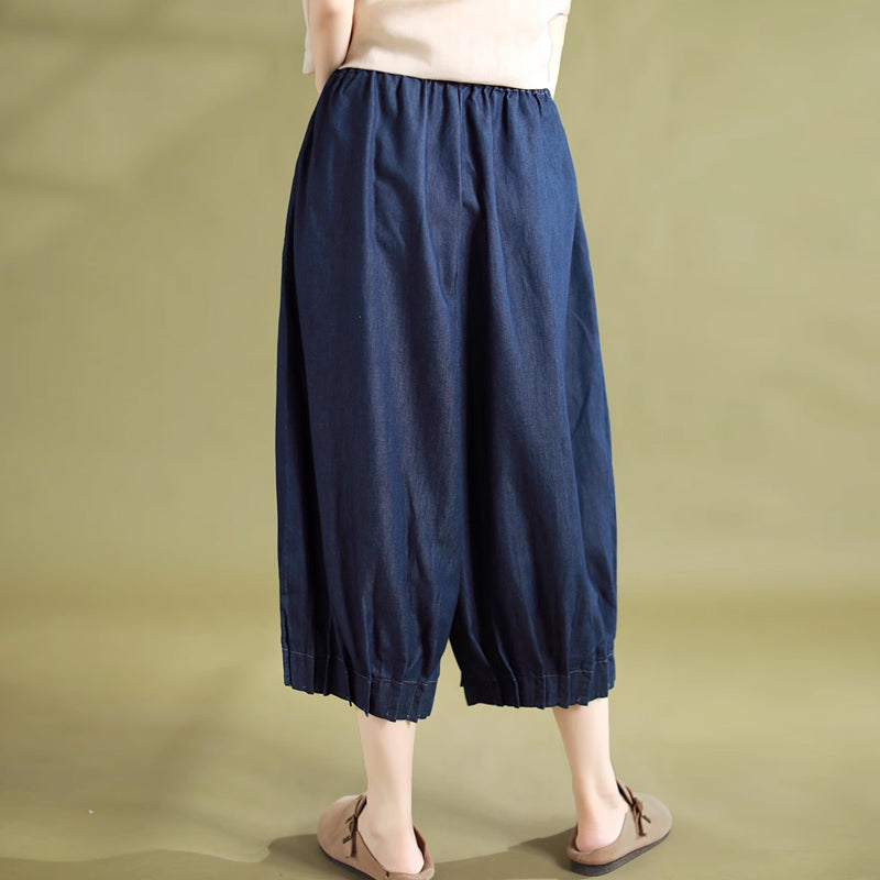 Quần baggy denim lưng thun ống rộng xếp ly - NU8929