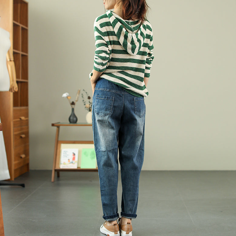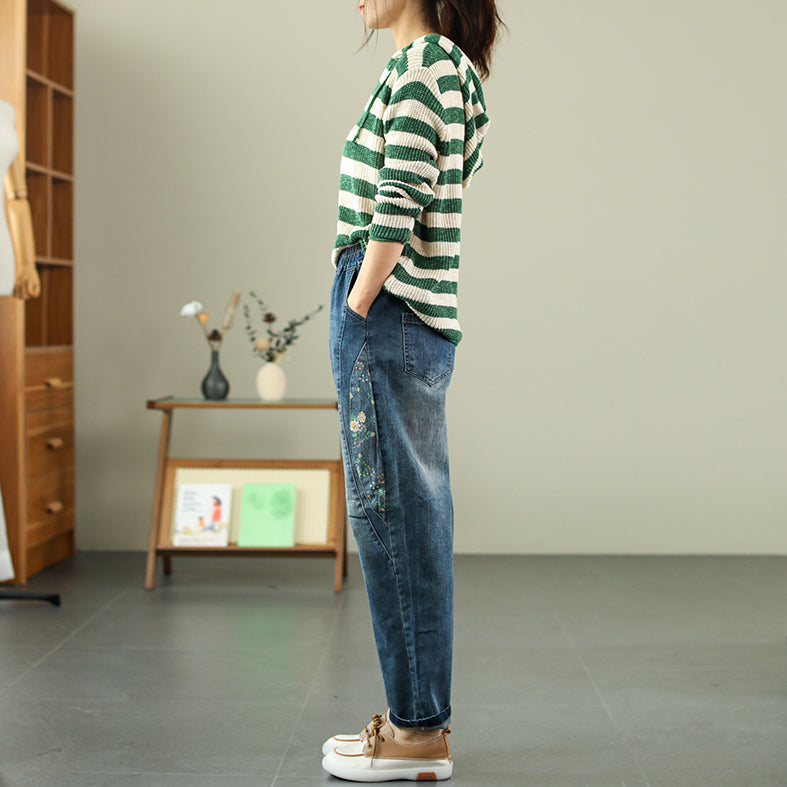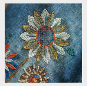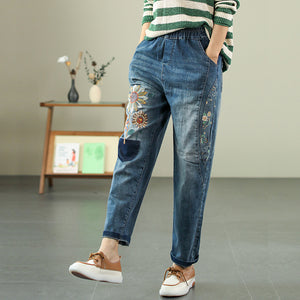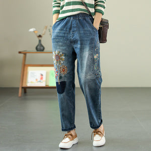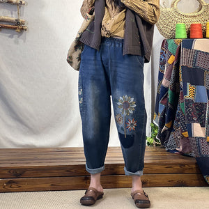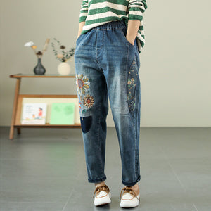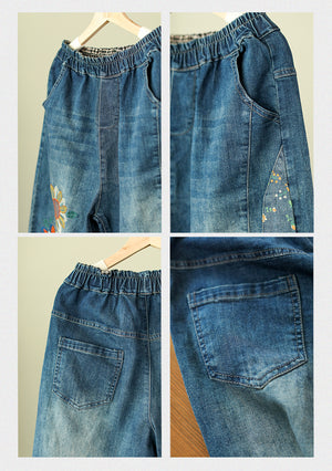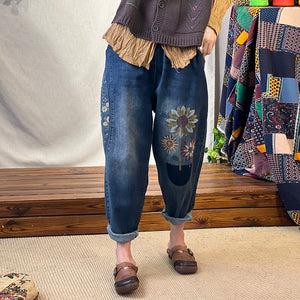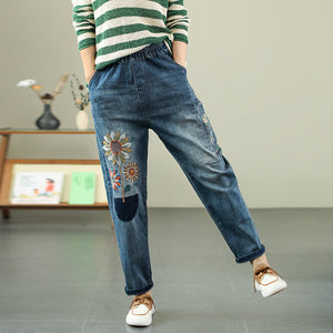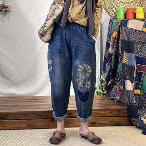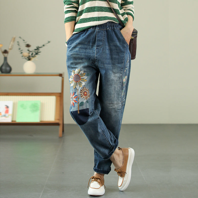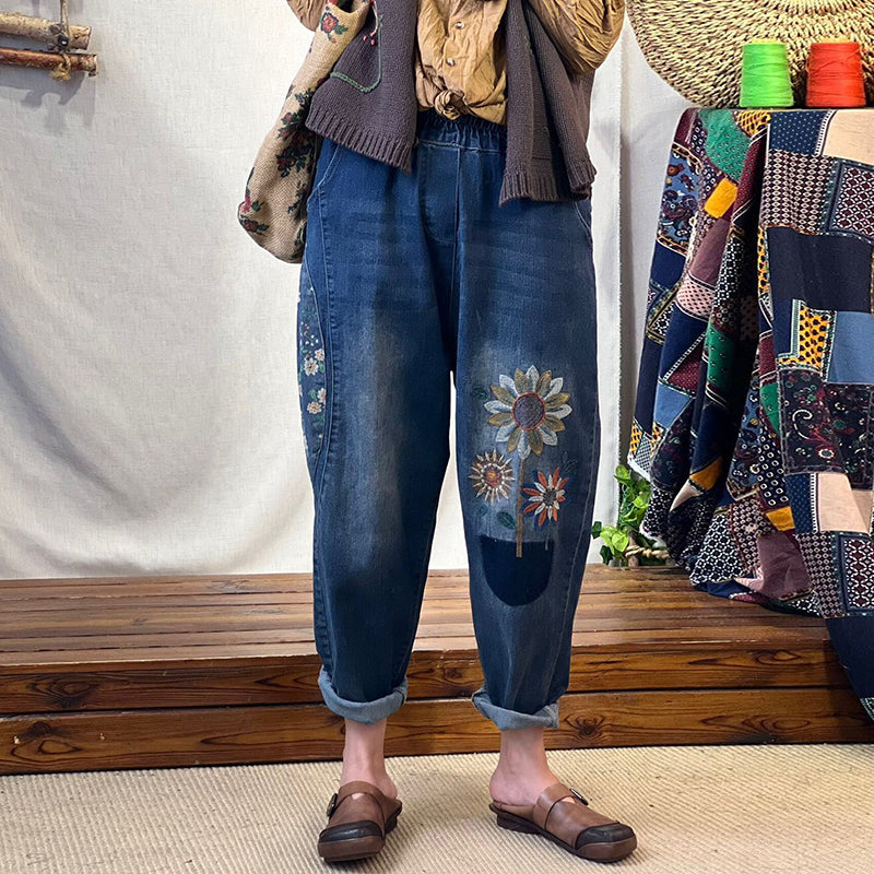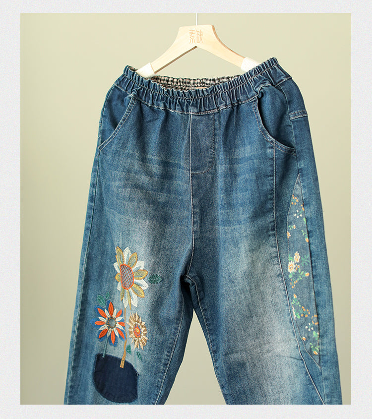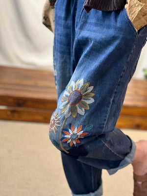 Quần baggy denim lưng thun thêu hoa hướng dương - NU8312