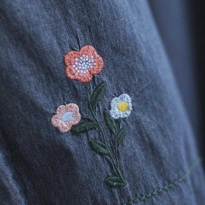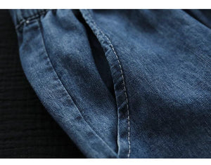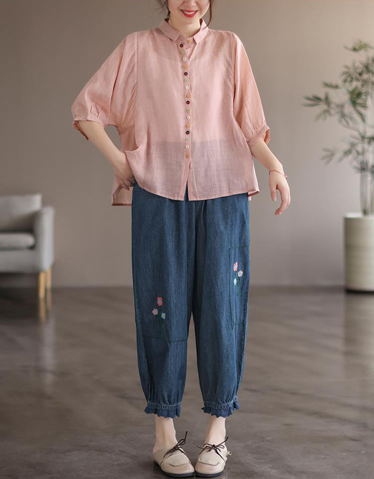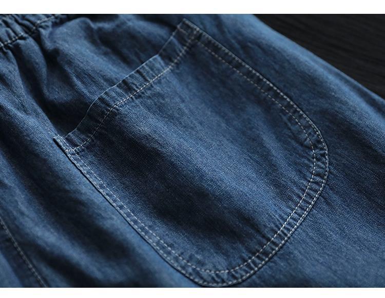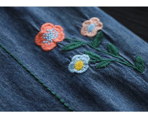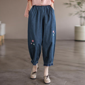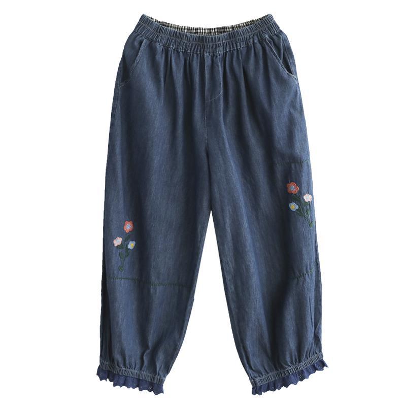 Quần baggy denim thêu hoa gấu thun đính ren - NU7626