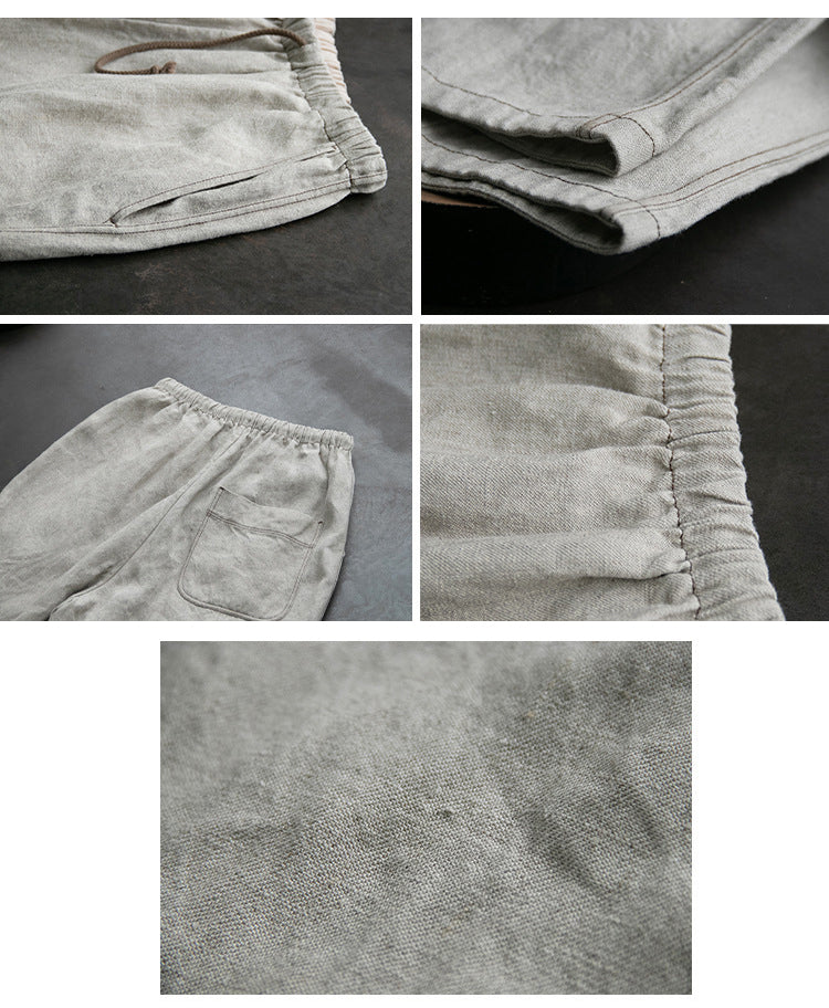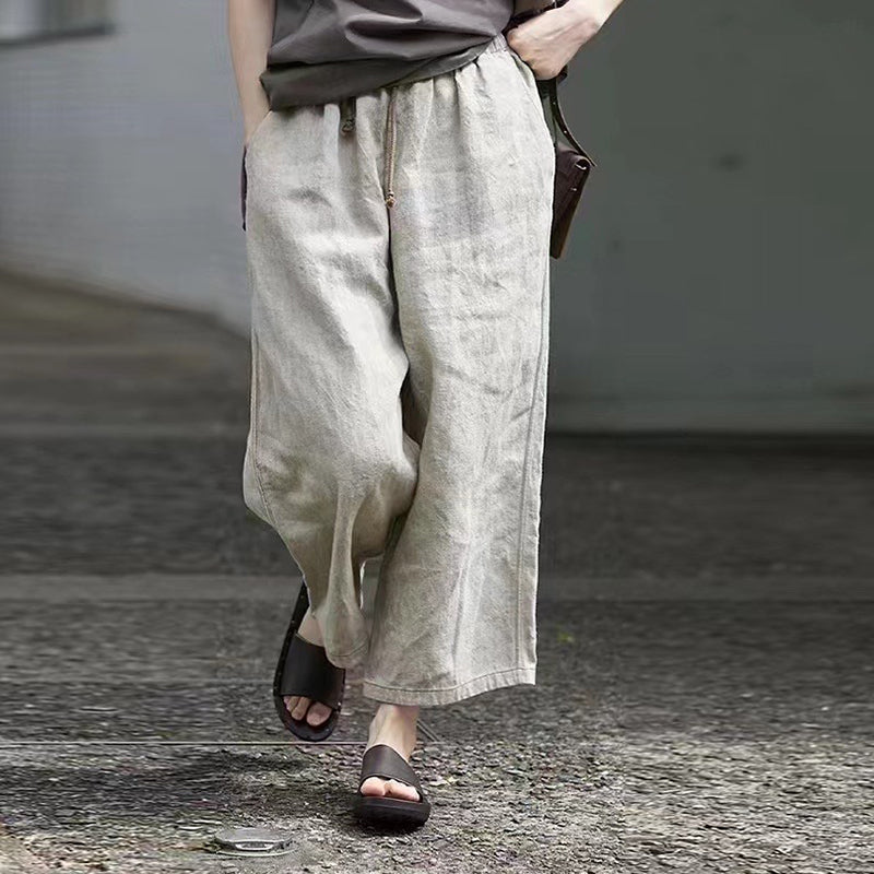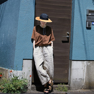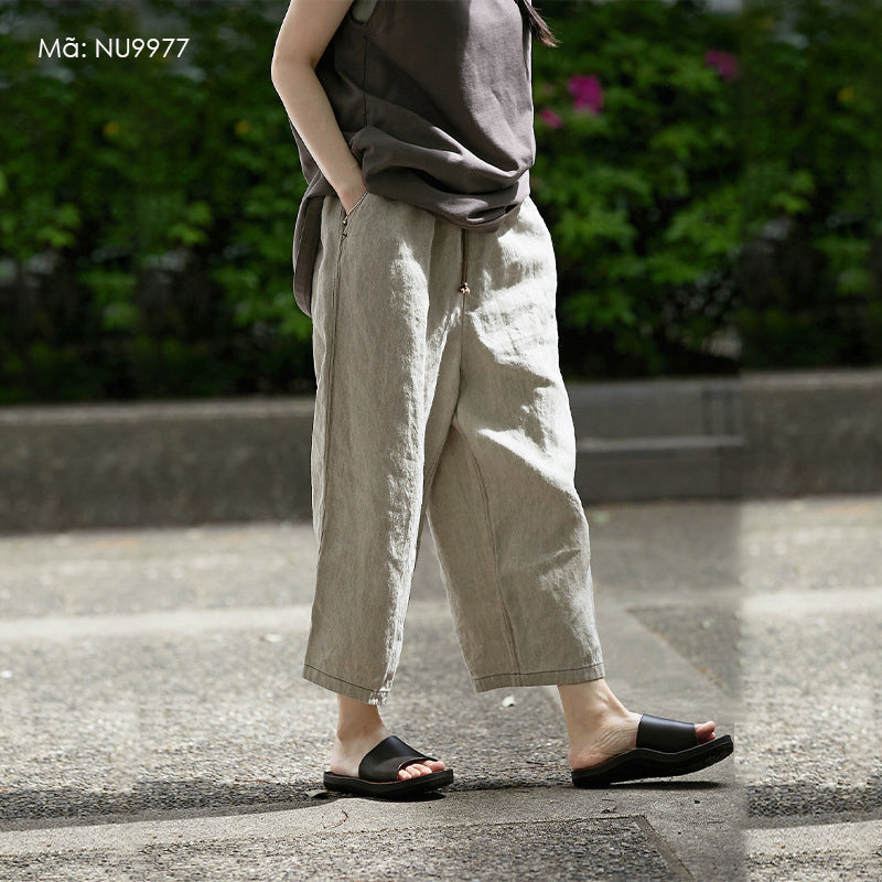 Quần baggy linen lưng thun dây rút ống suông - NU9977