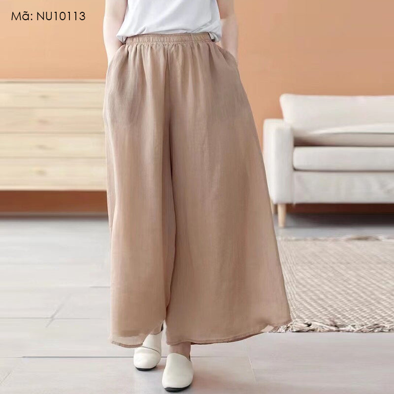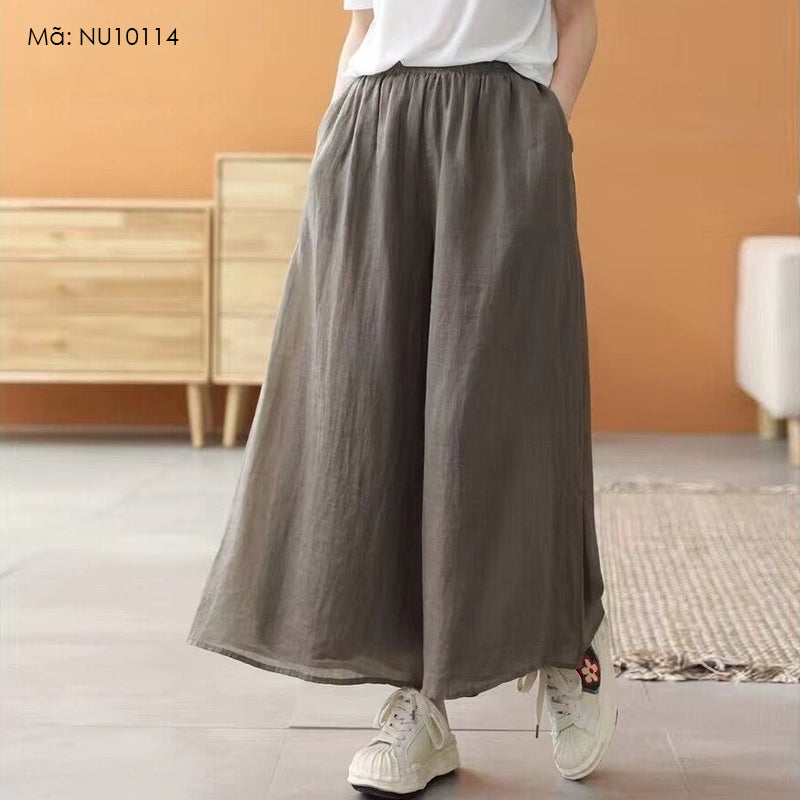 Quần baggy linen lưng thun ống rộng hai túi chéo - NU10112