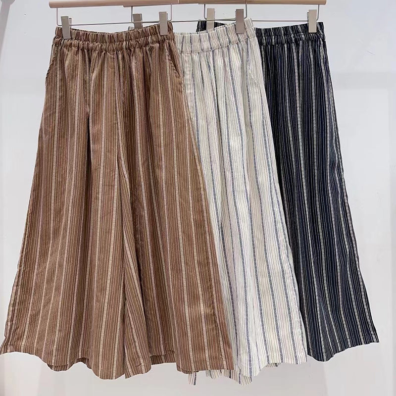 Quần baggy linen lưng thun ống rộng kẻ sọc quả trám - NU10161