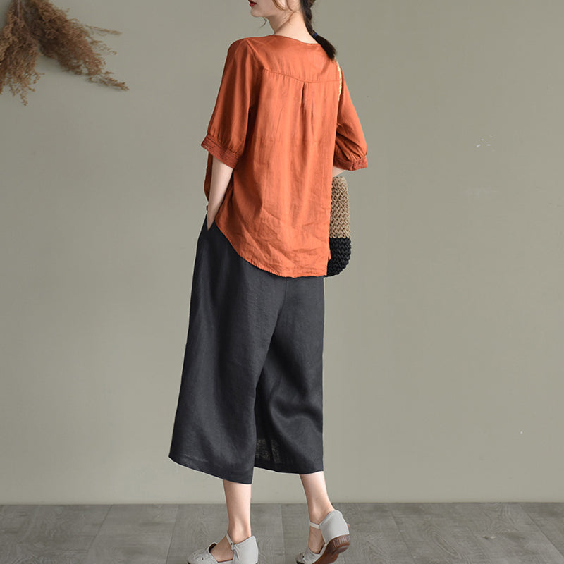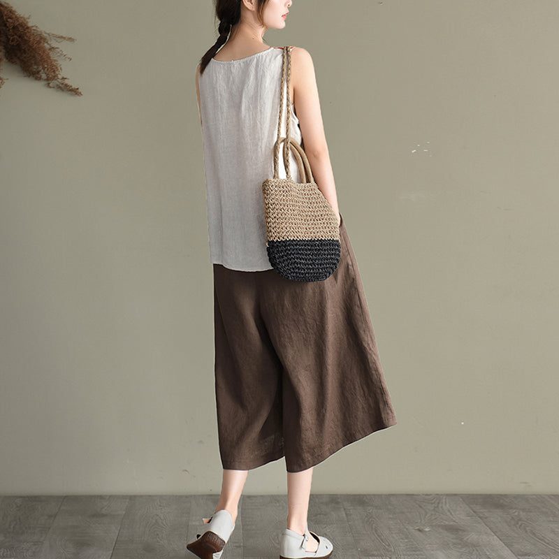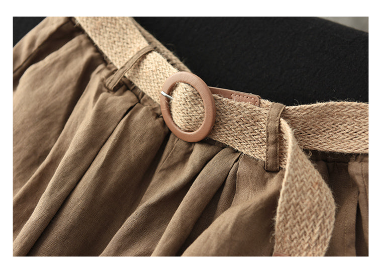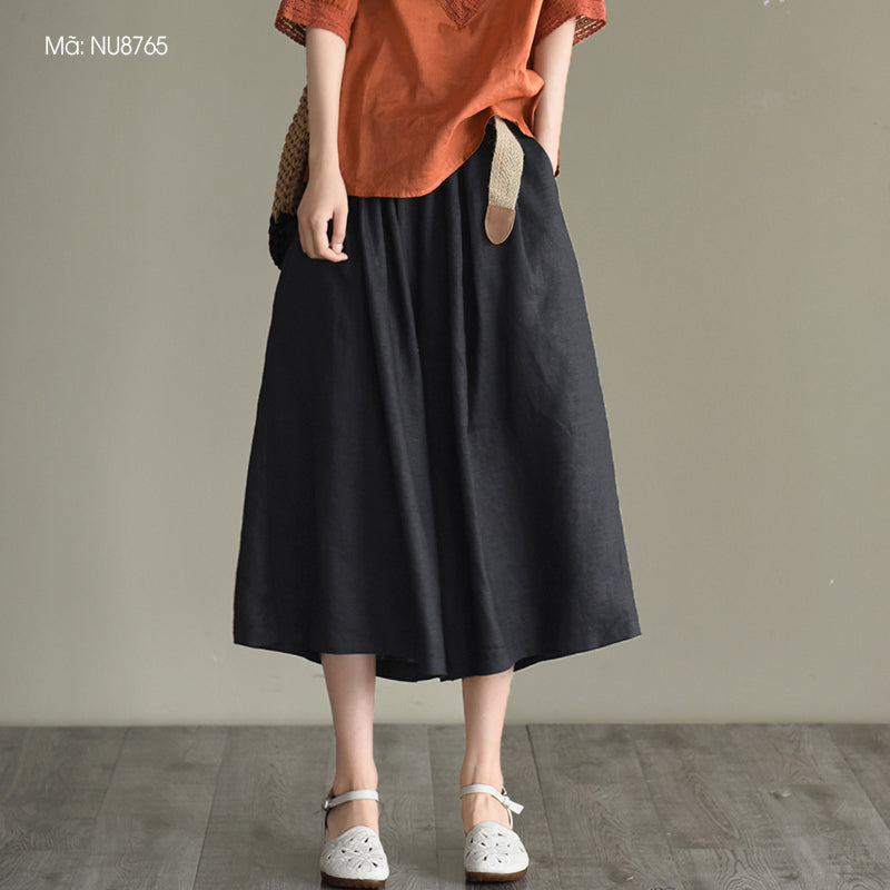 Quần baggy lửng linen lưng thun ống rộng kèm thắt lưng - NU8763