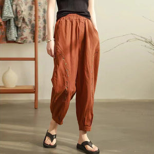 Quần baggy linen lưng thun thêu đối xứng hai túi chéo - NU6868
