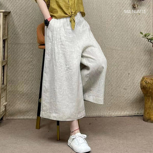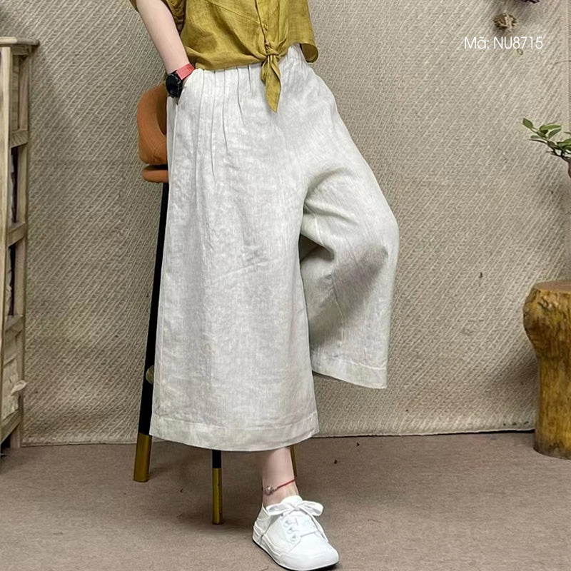 Quần baggy linen lưng thun xếp ly ống rộng đơn sắc - NU8712