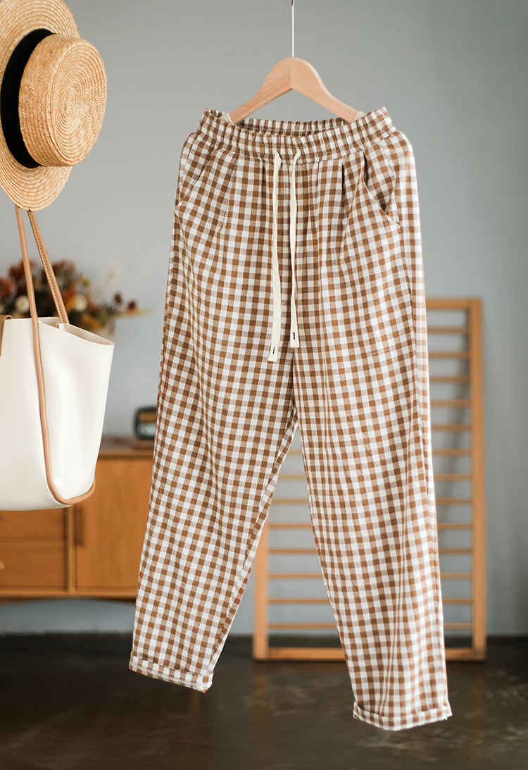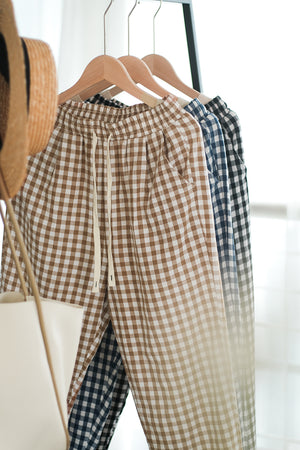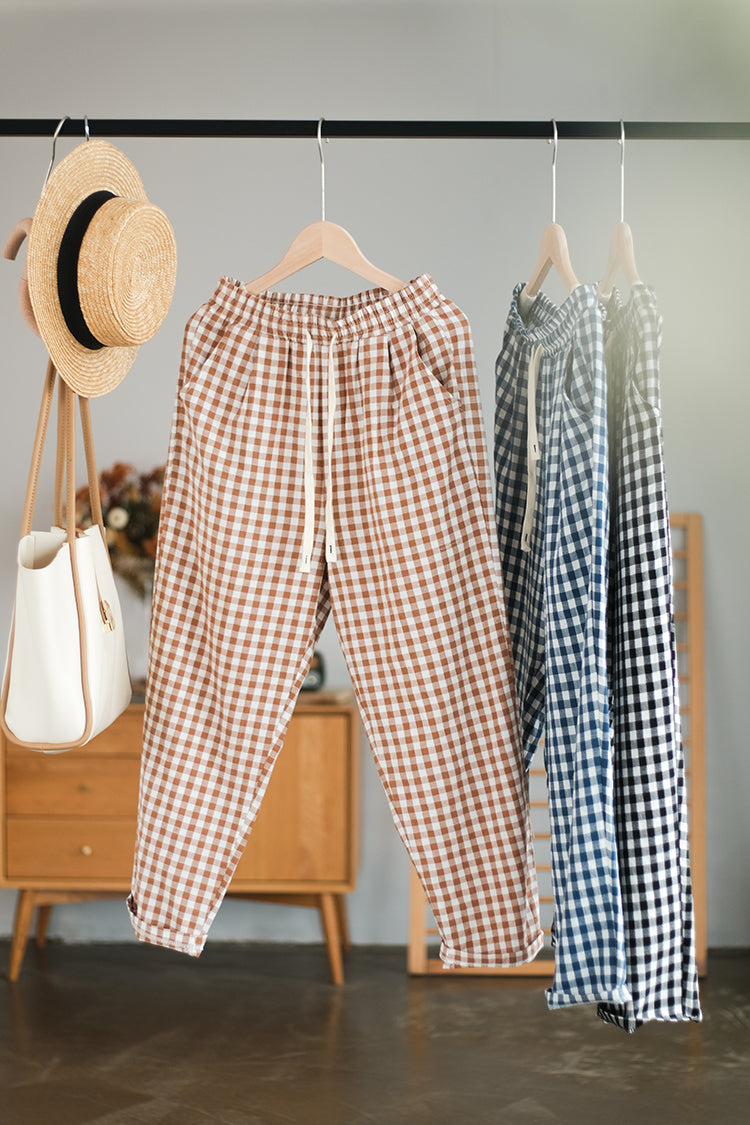 Quần baggy lưng thun dây rút ống côn caro - NU7237