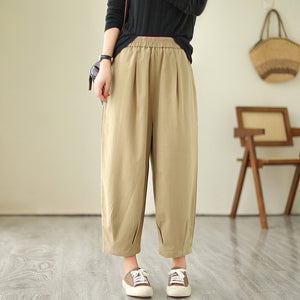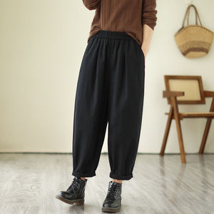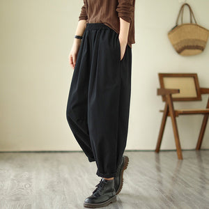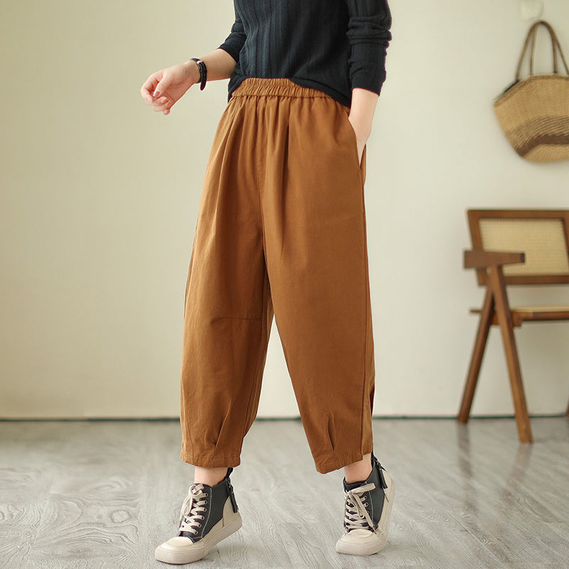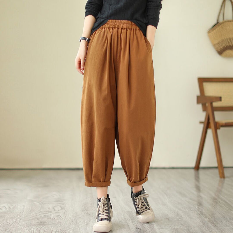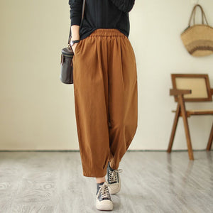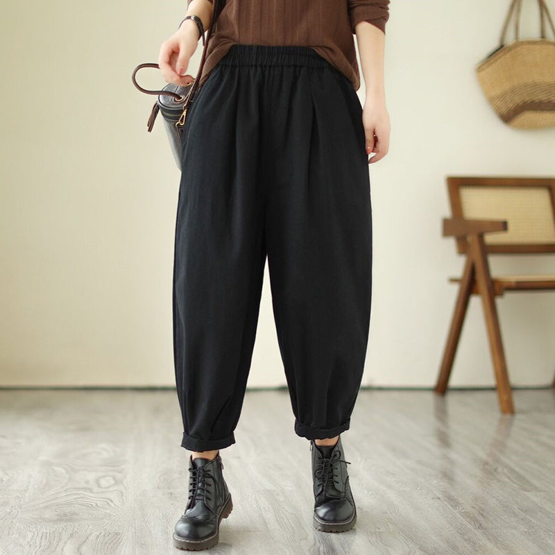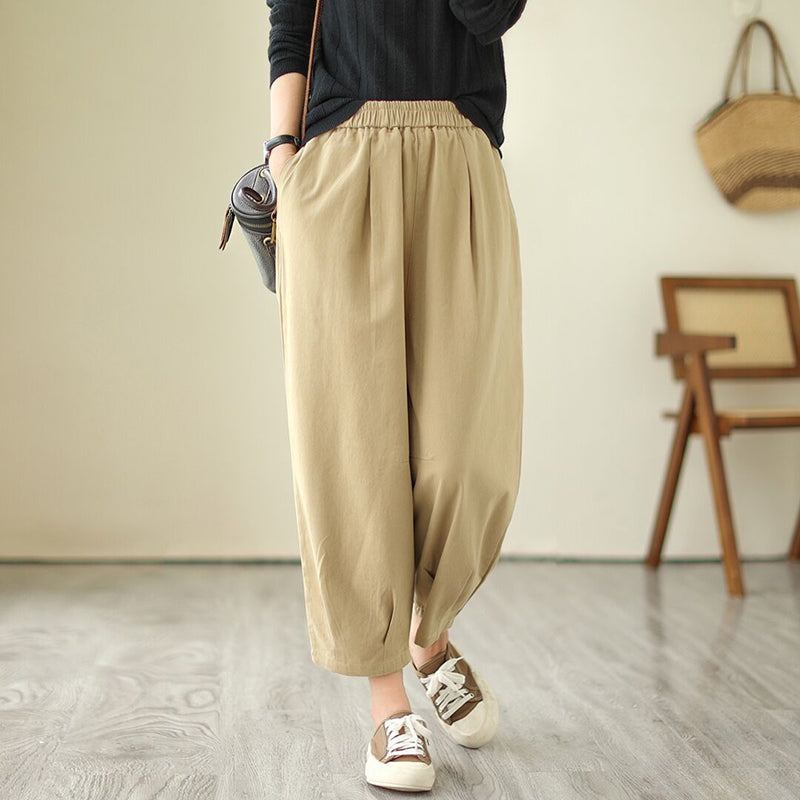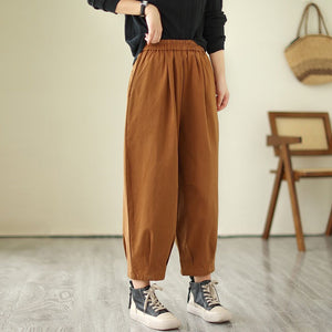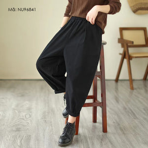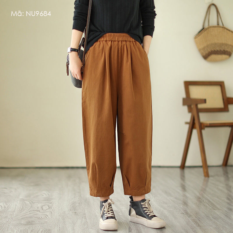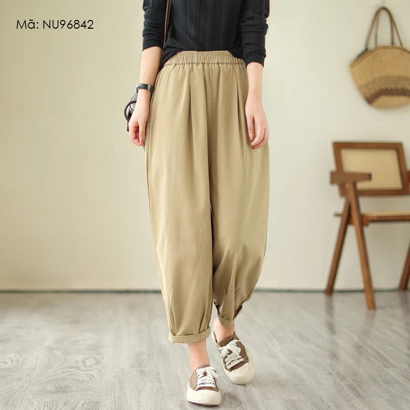 Quần baggy lưng thun một màu xếp ly gấu - NU9684