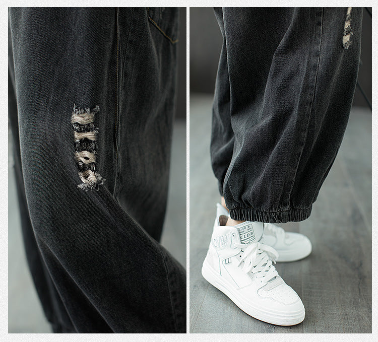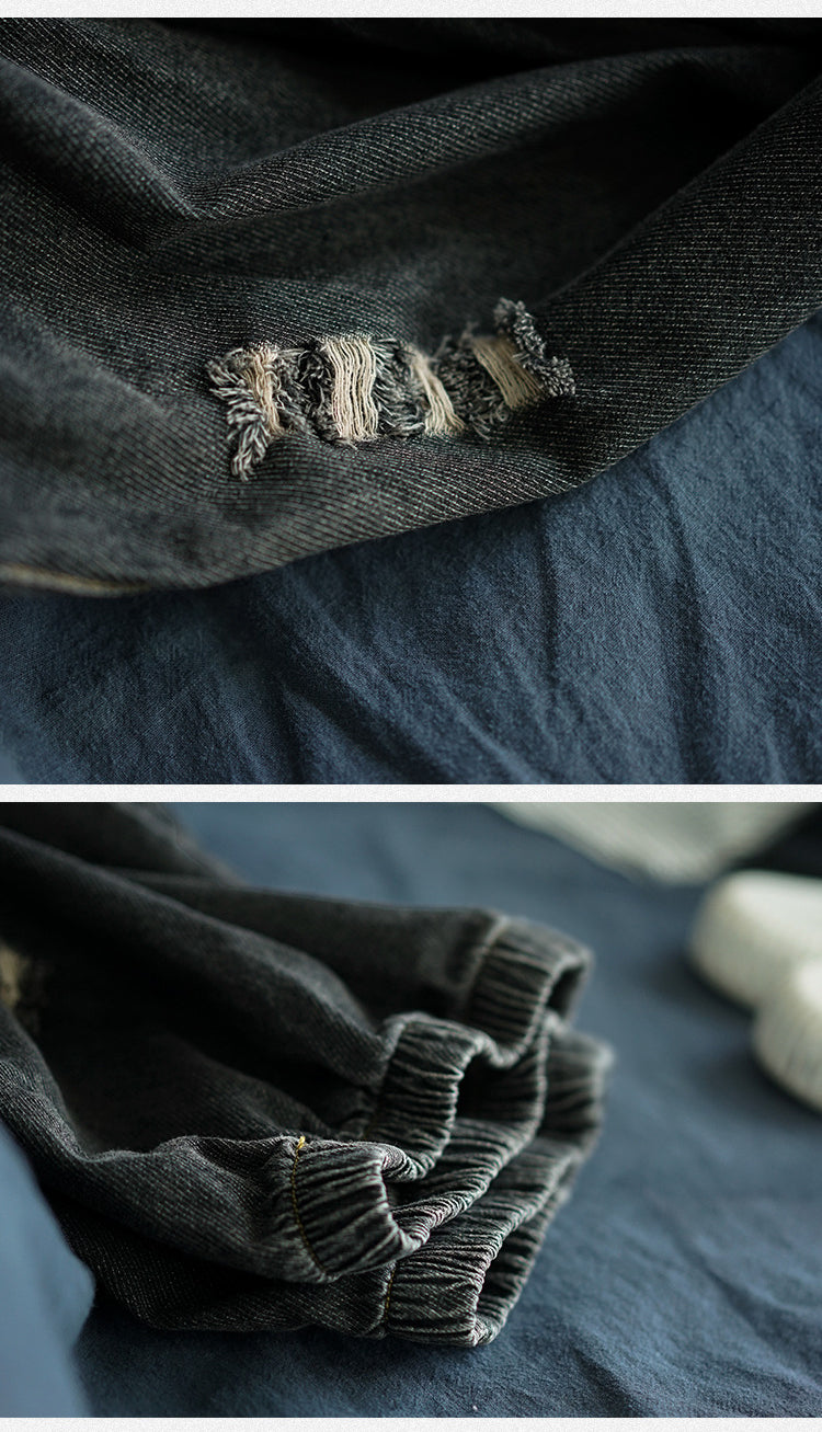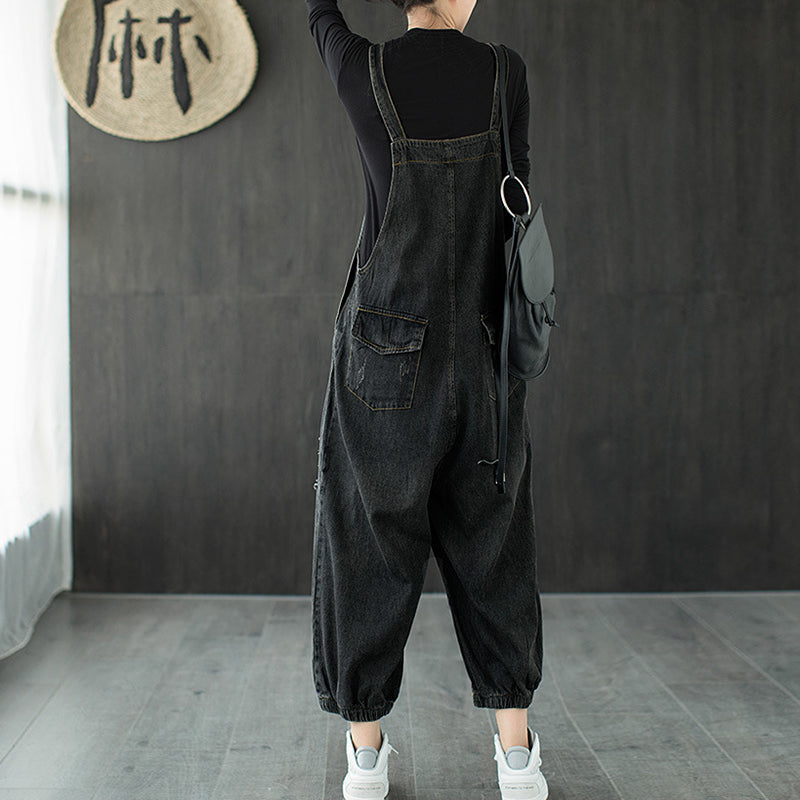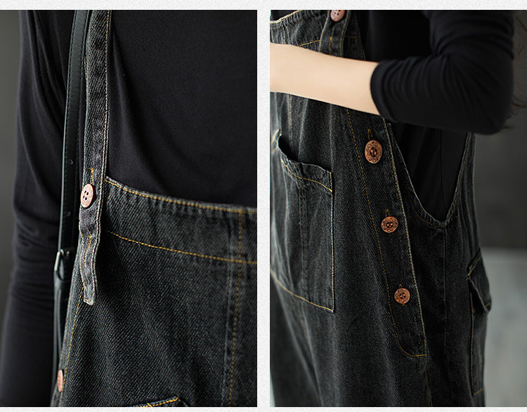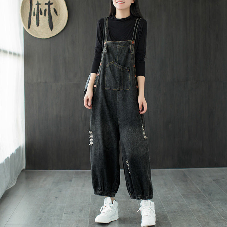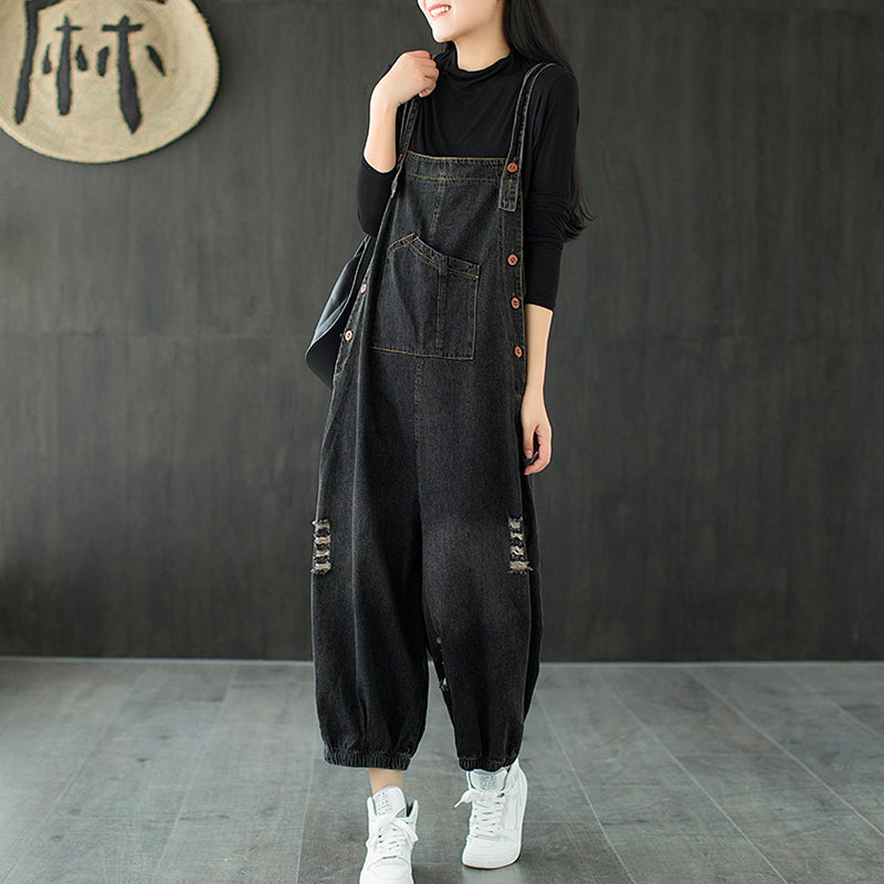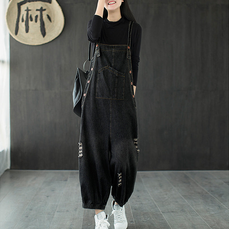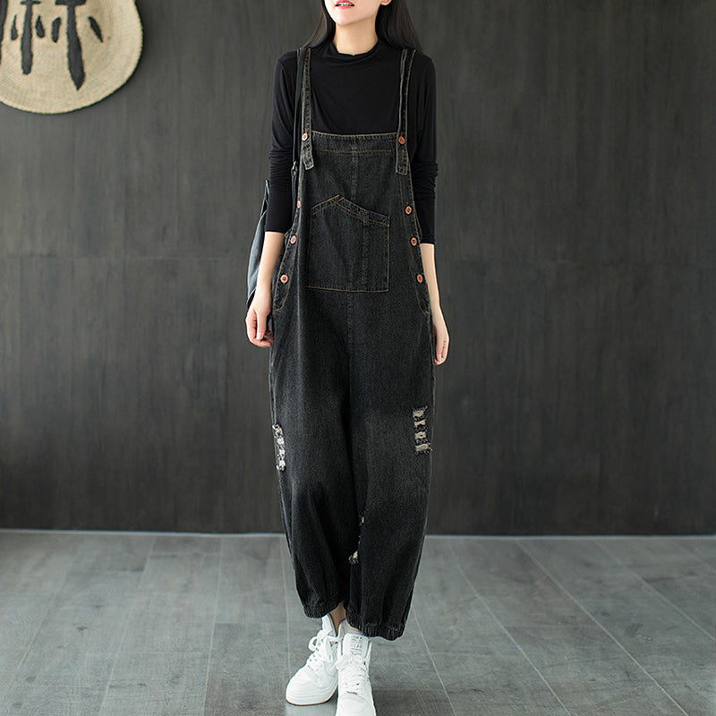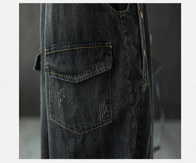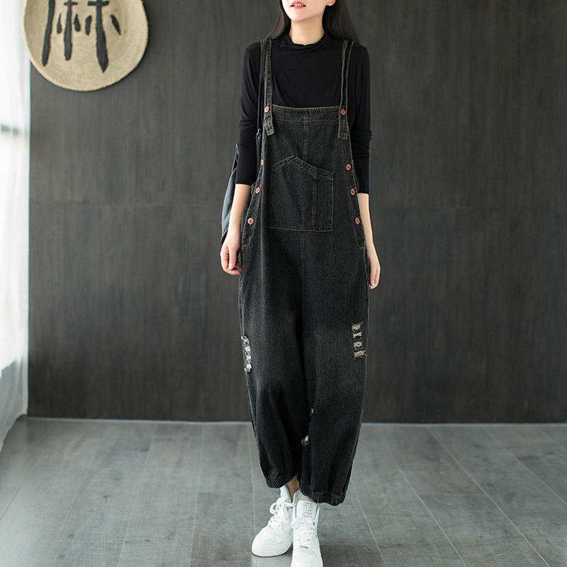 Quần baggy yếm denim retro túi kiểu sờn - NU6618