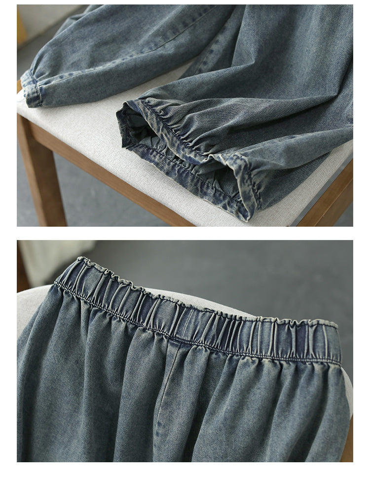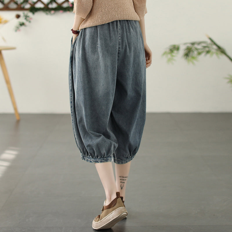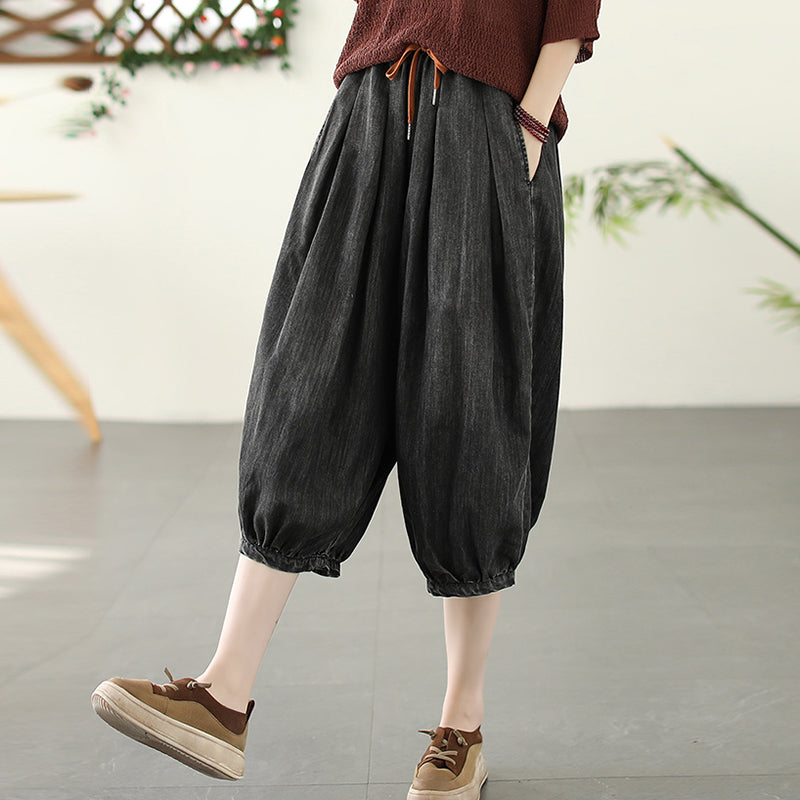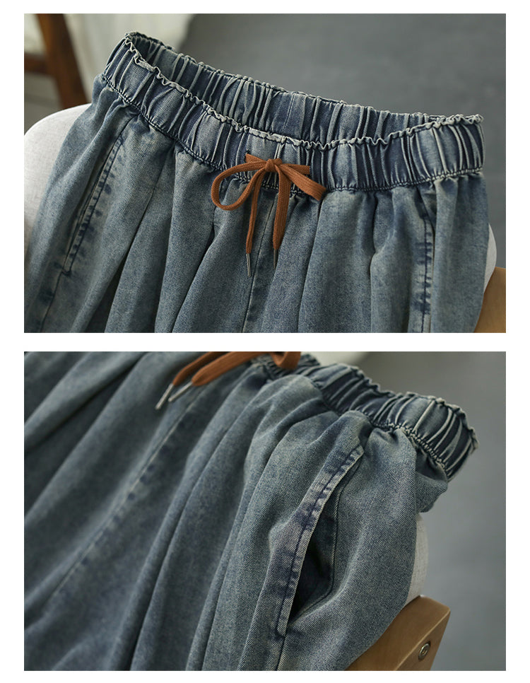 Quần baggy lửng denim lưng thun dây rút ống xếp ly - NU8600