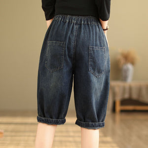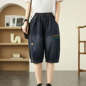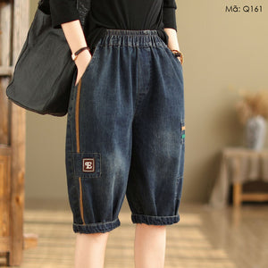 Quần sooc denim lưng thun hai túi chéo - Q161