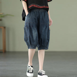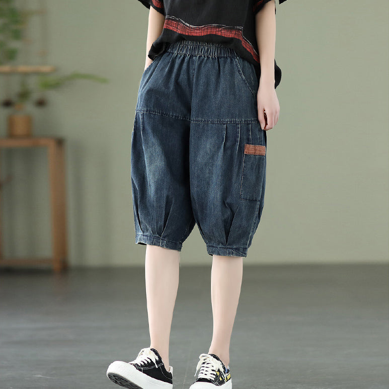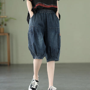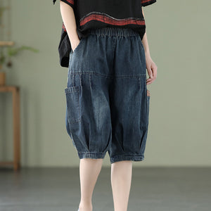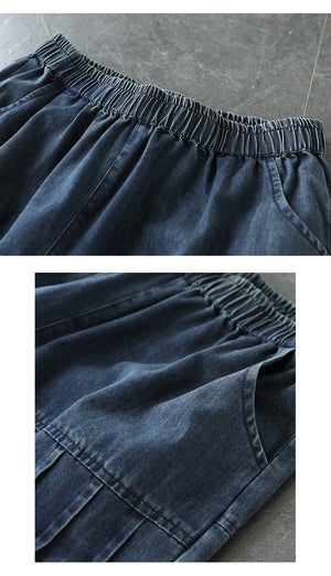 Quần sooc denim lưng thun hai túi đứng - NU6825
