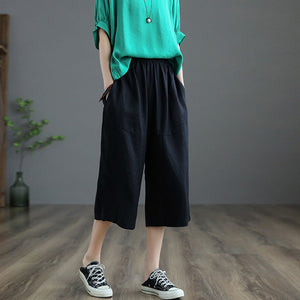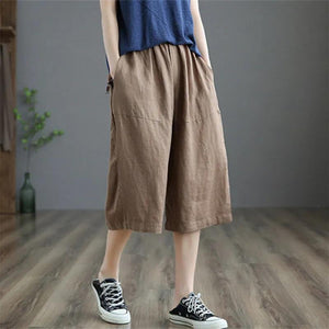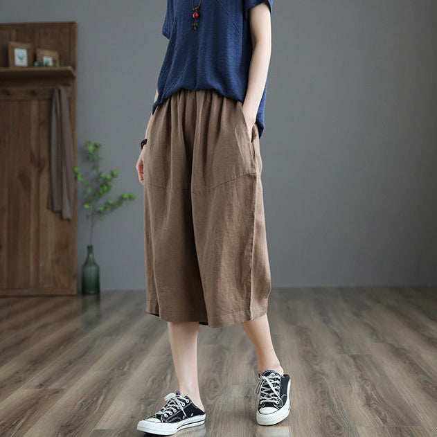 Quần sooc linen lưng thun ống rộng hai túi chéo - NU6832