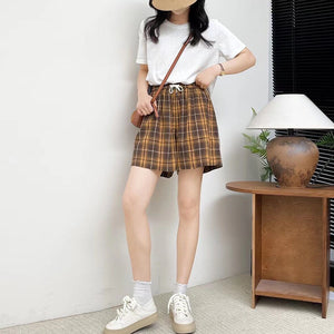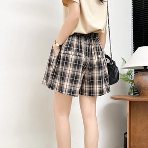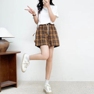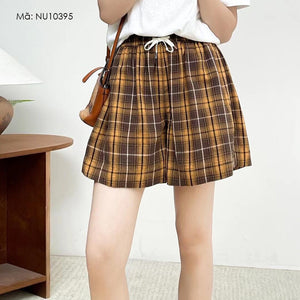 Quần sooc lưng thun dây rút kẻ caro - NU10395