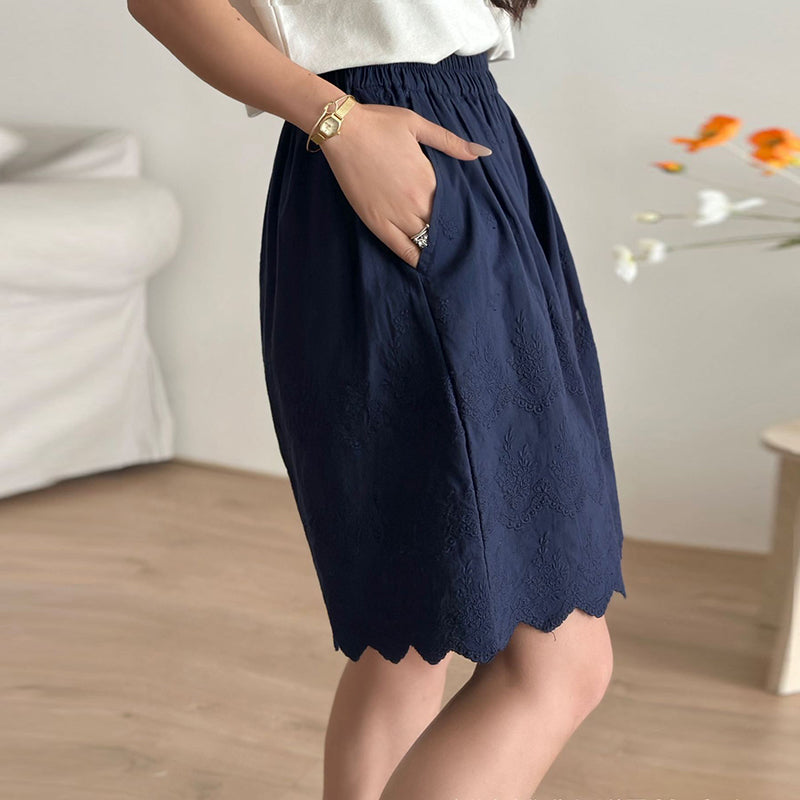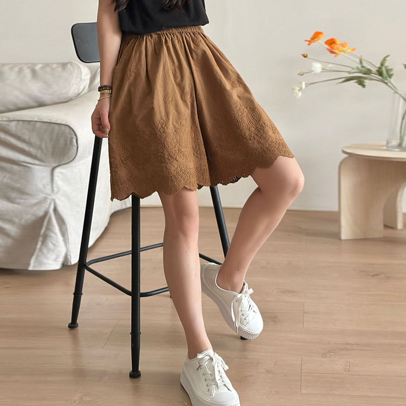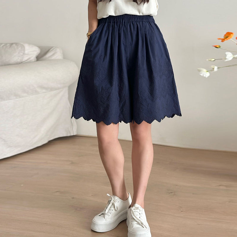 Quần sooc lưng thun thêu hoa văn đồng màu gấu lượng sóng - NU10340